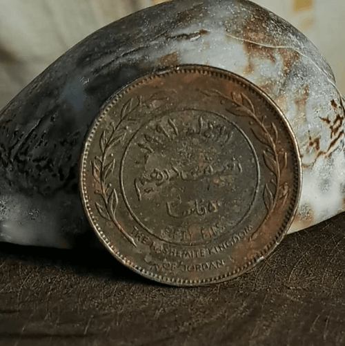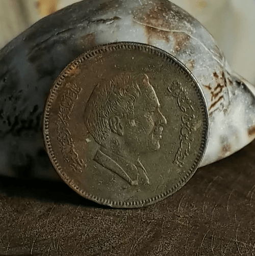Jordanian Half Dirham coin, actual weight 7.60 grams, non-magnetic, featuring an unusually smooth surface compared to the standard original issue.