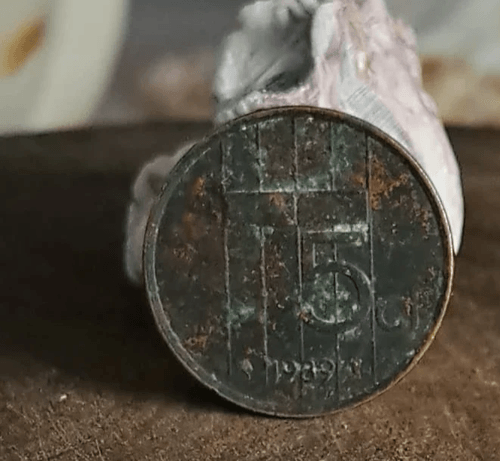 عملة 5 سنت هولندية (5c) – إصدار 1989، بوزن فعلي 3.50 غرام، غير جاذبة للمغناطيس.