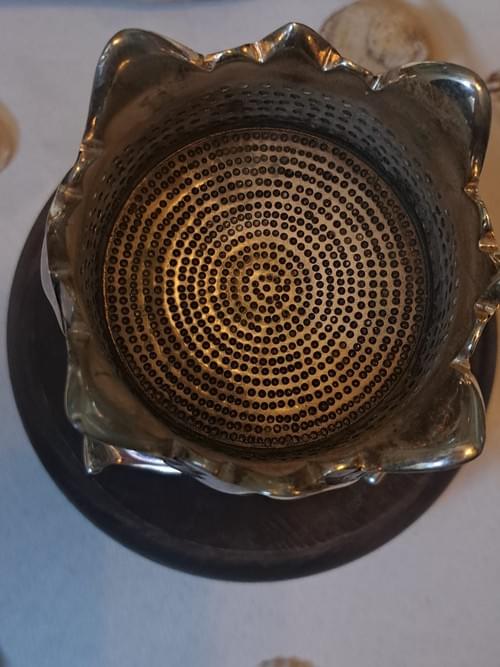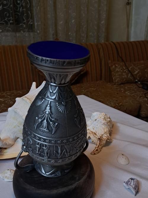 An elegant metal art piece inspired by the lotus flower, crafted with high precision and smooth, flowing details that reflect a classic and refined style. It features polished, scalloped edges with an attractive metallic shine, and an interior base decorated with a harmonious circular dotted pattern that adds visual depth and artistic character. Mounted on a sturdy base, it is ideal as a decorative centerpiece, candle holder, or a refined display item that enhances any space. A piece that combines beauty, balance, and timeless elegance, perfect for collectors and lovers of classic décor Unique piece .