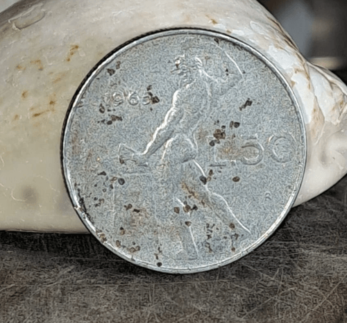 The surface appears smoother than usual, with signs of metal flow inconsistency and possible alloy variation, making it significantly different from a regular circulation strike.