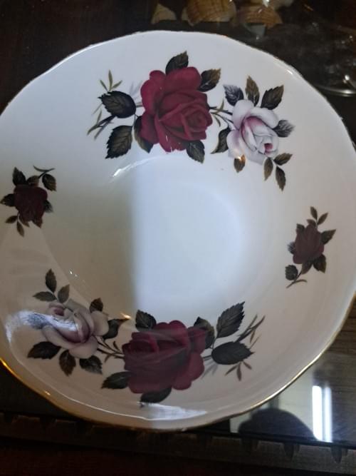 Beautiful rose motifs and gold trim create a classic, elegant look that enhances any table setting or decorative display.