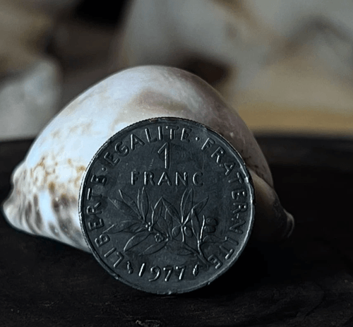 عملة فرنسية قديمة فئة ١ فرنك لعام 1977 مع خطأ نادر في السك. تتميز هذه القطعة بازدواجية في المعدن واختلاف طفيف في الوزن، حيث الوزن الأصلي يقارب 6.00 غرام بينما وزن هذه العملة 5.96 غرام مما يدل على وجود خلل في تركيب المعدن أ…