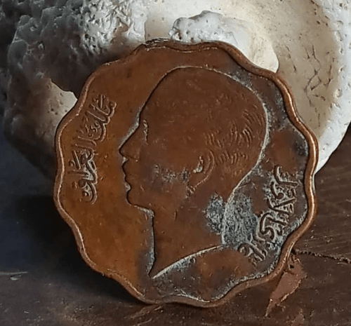 عملة 10 فلوس عراقية أصلية سنة 1957 من عهد الملك فيصل الثاني.