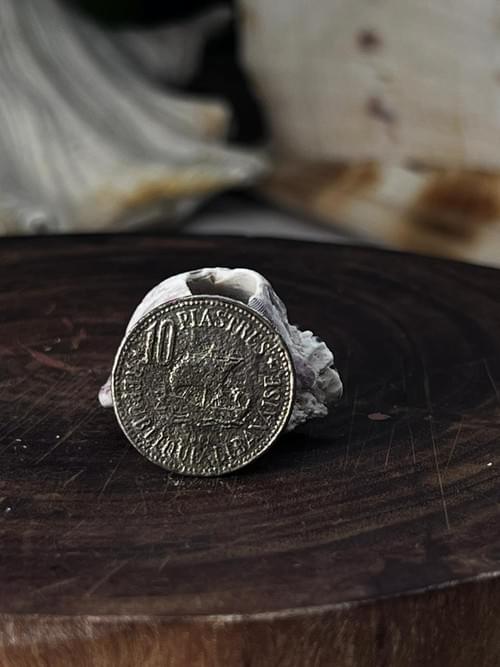 Old Lebanese 10 Piastres coin from the Lebanese Republic, showing clean details and strong surface shine without rust or corrosion. The date is not fully readable due to the reflective shine on the aluminum surface. One side features the iconic Lebanese Cedar tree, while the other shows the “10” denomination in Latin script. The coin is made of lightweight aluminum, non-magnetic when tested, and weighs approximately 3.2 g. A suitable piece for collectors of old Arabic coins who appreciate clean and shiny surfaces, and it photographs beautifully as shown. Worldwide shipping ava