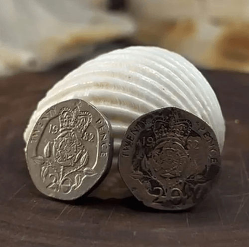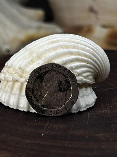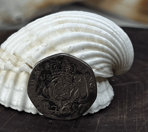عملة بريطانية من فئة عشرين بنس لعام 1982 عليها صورة الملكة إليزابيث الثانية وبحالة غير عادية حيث يظهر خطأ واضح في السطح ونحت غير متجانس مع مناطق باهتة ومشوّهة في التصميم الأمامي والخلفي، وزن العملة الأصلية يكون تقريباً 5.00 غرام أما هذه القطعة وزنها 4.92 غرام وهو أقل من الوزن القياسي مما يشير إلى اختلاف بالمعدن أو ضعف في عملية السك، إضافة لعدم انجذابها للمغناطيس مما يؤكد أنها ليست من سبيكة مطابقة تماماً للعملة الأصلية التي غالباً تحتوي على معادن منجذبة أو بنسبة مختلفة، هذه الفروق تجعل القطعة مثيرة لهواة جمع الأخطاء والعملات النادرة خصوصاً لمحبي Mint Errors وتأتي من عام 1982 وهو عام مهم في إصدار العشرين بنس، القطعة كما هي بدون تنظيف لأنها تحتفظ بطابعها الأصلي، رابط الشراء: [ضع الرابط هنا]، الشحن متوفر دولياً خلال 7 إلى 21 يوم حسب الدولة.