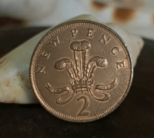 عملة بريطانية فئة 2 بنس تحمل صورة الملكة إليزابيث الثانية، تتميّز بحالة بصرية غير اعتيادية تجعلها مخ