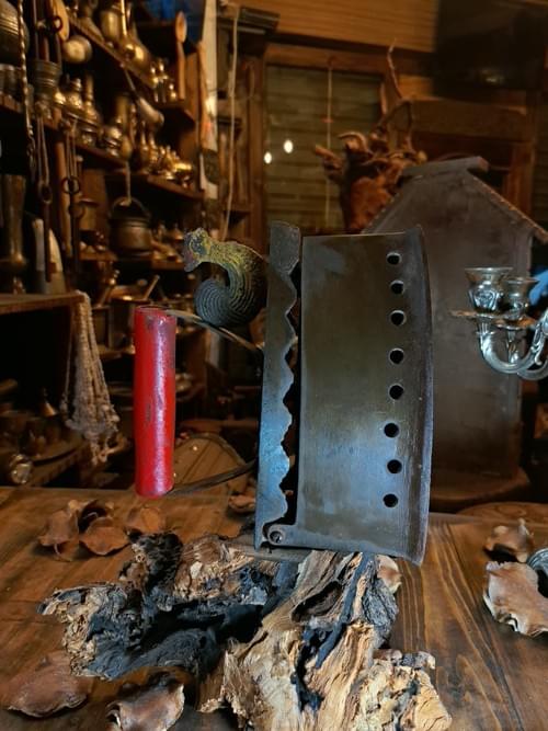 An authentic vintage charcoal iron (antique) from the old days, a true heritage piece from before electric irons. Made of solid metal with ventilation holes for balanced charcoal heat and a sturdy top handle. Its aged patina and classic craftsmanship give it a unique vintage character—perfect for collectors or elegant décor. Available exclusively on our website: www.yaseencollectibles.com Shipping takes 7–21 days with secure, careful packaging.