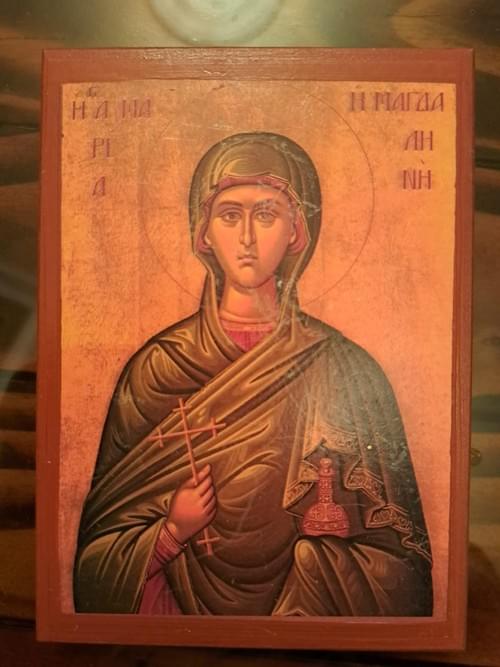 أيقونة دينية يونانية مرسومة على الخشب بأسلوب تقليدي مستوحى من مدرسة جبل آثوس (Mount Athos)، تجسّد روح الفن البيزنطي الكلاسيكي بتفاصيل دقيقة وألوان هادئة ذات طابع روحي عميق. الأيقونة مثبتة على لوح خشبي متين، وتحمل شهادة توثيق مرفقة تؤكد أنها أيقونة خشبية مصنوعة يدويًا وفق التقنية التقليدية لجبل آثوس.