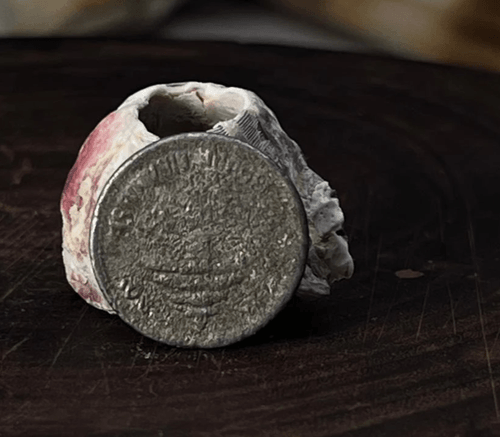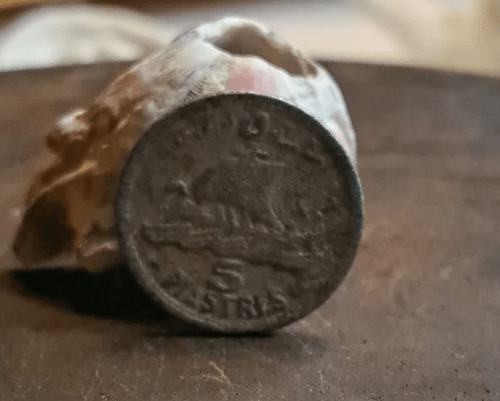 عملة لبنانية نادرة من فئة 5 قروش مصنوعة من الألمنيوم، وتظهر عليها علامة خطأ سك