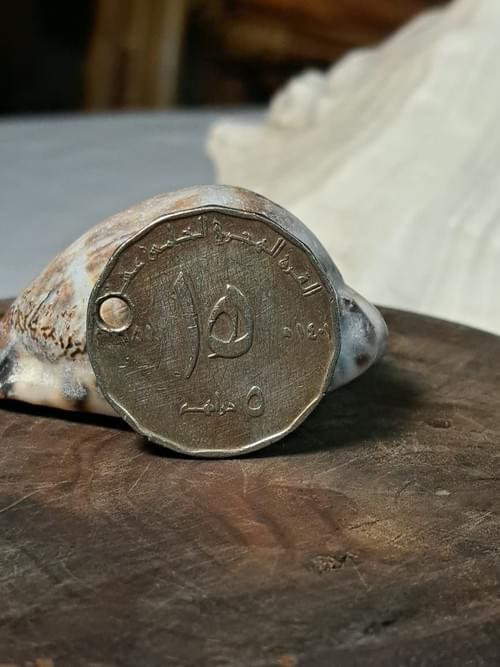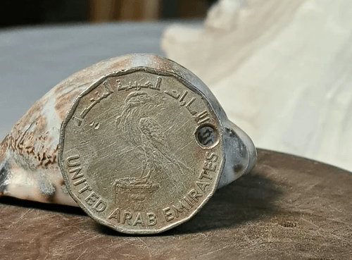 **قطعة ٥ فلوس إماراتية قديمة – وزنها ١٣.٨٥غ تقريباً – قطعة معدنية مميزة من الإمارات العربية المتحدة تحمل صورة الصقر التراثي، وعلى الجهة الأخرى قيمة (٥) فلوس بشكل واضح، وبسبب خلل واضح في المعدن يظهر ثقب غير منتظم على الوجه والظهر، ما يمنحها طابعاً فريداً يجذب هواة الأخطاء المعدنية والقطع ذات التاريخ. القطعة ناعمة الملمس مع آثار استخدام خفيفة تعكس انتقالها عبر الأيدي والسنين. قطعة جاهزة للعرض أو الإضافة لمجموعتك، ويتم شحنها لكل دول العالم، وشحن مجاني للقطع المعدنية فقط.