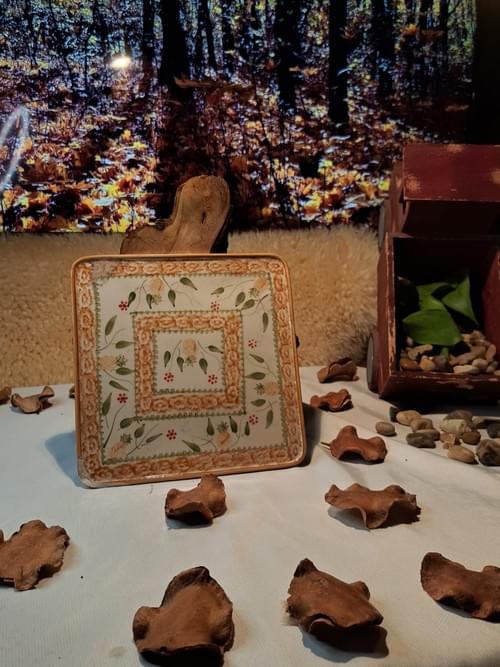 A square ceramic piece with an elegant classic artistic design, decorated with delicate floral and botanical patterns in warm, refined colors. Crafted with high-quality ceramic and a beautiful glossy finish, the piece is well preserved with no visible cracks or damage, making it ideal for decorative display or for collectors of unique artistic ceramics.
