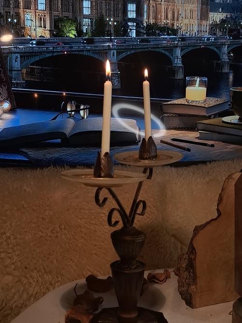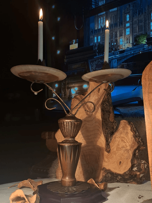 A rare double-arm antique-style candle holder crafted from heavy metal with an elegant classic European design. Featuring two balanced candle plates and a solid base, this piece adds warmth, sophistication, and timeless character to any interior. Not commonly found on the modern market, it is ideal for collectors, vintage decor lovers, or anyone seeking a distinctive statement piece. Excellent condition with no damage, preserving its authentic charm.
