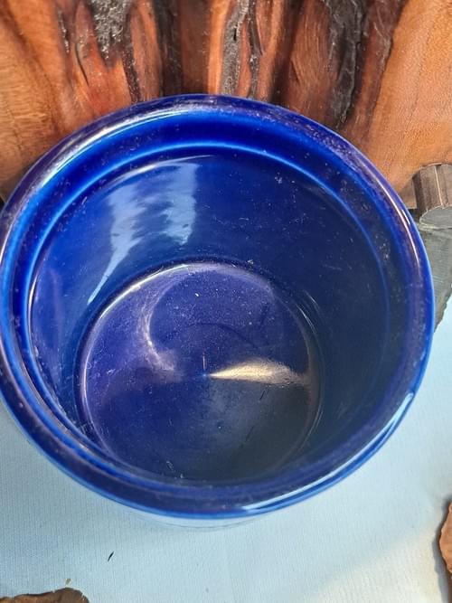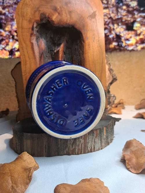 A beautiful cobalt blue glazed ceramic piece with an elegant beaded relief design that wraps around the body, giving it a classic and refined look. Made of high-quality durable stoneware, this piece is clearly stamped on the base Oven Safe / Dishwasher Safe, making it suitable for everyday use as well as decorative display. Ideal as a multi-purpose container or a stylish kitchen or table décor item. The glossy finish and excellent condition highlight its quality craftsmanship, making it a perfect choice for vintage décor lovers and functional ceramic collectors.