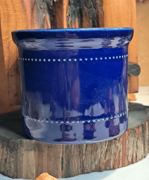 قطعة سيراميك ديكورية باللون الأزرق الكوبالت اللامع، بتصميم أنيق ونقش نقطي بارز يلفّ الجسم ويمنحها طابعًا كلاسيكيًا جذابًا. القطعة مصنوعة من سيراميك متين عالي الجودة، ومختومة من الأسفل بعبارة Oven Safe / Dishwasher Safe ما يدل على أنها صالحة للاستخدام اليومي بالإضافة إلى كونها قطعة ديكور جميلة. مثالية للاستخدام كوعاء متعدد الاستعمالات، أو كقطعة ديكور للمطبخ أو الطاولة، وتتميّز بحالة ممتازة ولمعان واضح يعكس جودة التصنيع. خيار رائع لهواة القطع الـVintage والديكور العملي الأنيق.