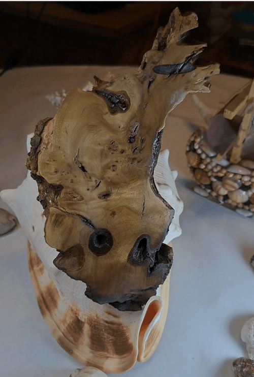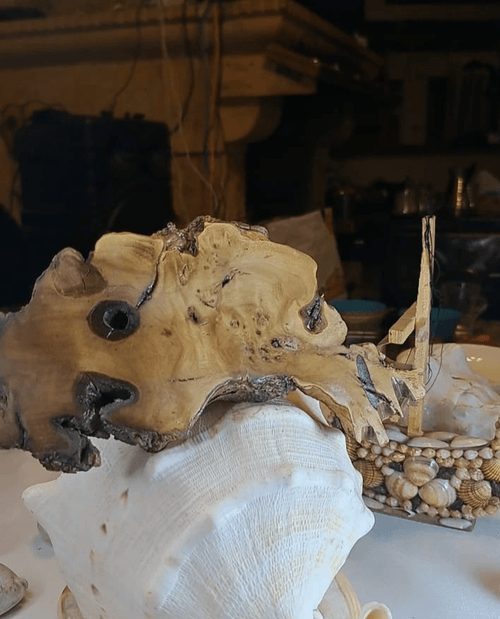 A rare natural wooden art piece shaped like a fish, formed entirely by nature from an aged wood trunk with absolutely no carving or artificial sculpting. The remarkable curves, textures, and organic cavities reflect a unique natural formation, making every angle visually striking. This piece is 100% natural wood, untouched by artistic reshaping—only carefully cleaned and preserved to maintain its authentic beauty. Ideal for serious collectors and enthusiasts seeking one-of-a-kind natural formations that cannot be replicated. A distincti
