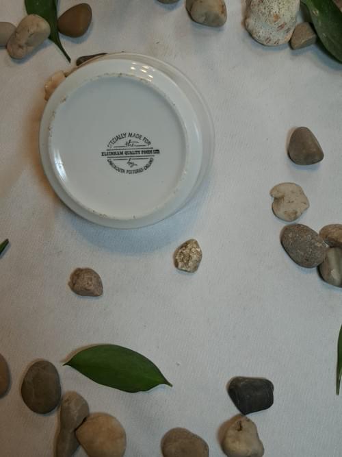 صحن بورسلان مميز يحمل الختم الأصلي المعروف لهذه الشركة، وهو ختم موجود على قطع أخرى حول العالم.