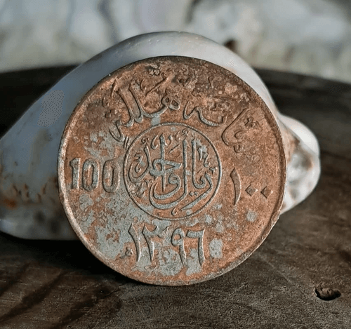قطعة سعودية نادرة من فئة ١٠٠ هللة تعود لسنة ١٣٩٦ هجري، تحمل آثار أكسدة طبيعية واضحة من الزمن أعطتها مظهراً تراثياً فريداً في اللون والسطح، مع بروز تفاصيل الخط العربي وشعار السيفين والنخلة بشكل جميل رغم مرور العقود. اللون المتدرج بين الأحمر والبني والرمادي نتيجة لتفاعل المعدن مع البيئة، ما أضفى على العملة طابع قديم جذاب يحبه جامعو القطع التاريخية. هذا الإصدار أقل انتشاراً اليوم بحالة كهذه، مما يجعلها قطعة مناسبة للعرض، للهدايا التراثية، أو للإضافة في مجموعات الخليج القديمة. الشحن متاح من ٧ إلى ٢١ يوم عبر رابط المتجر بالأسفل.