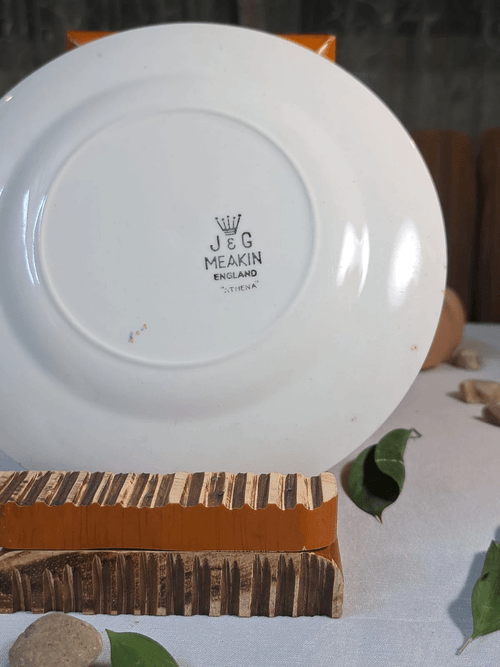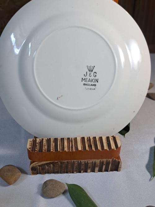 The back stamp “J&G MEAKIN – ENGLAND – ATHENA” is fully visible, confirming authenticity and making this piece ideal for collectors, display shelves, or as a decorative serving plate in a vintage-inspired home.