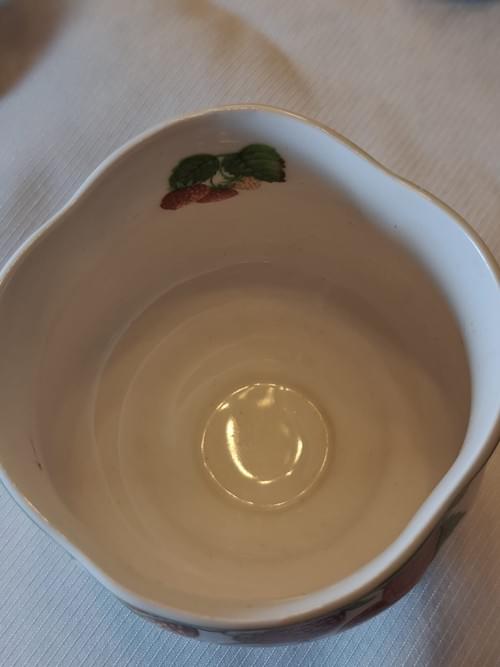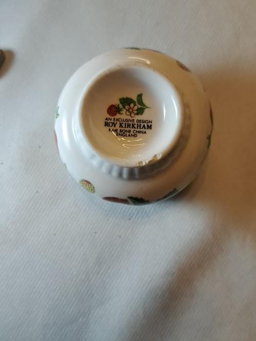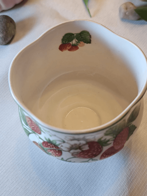 قطعة بورسلان أنيقة من تصميم ROY KIRKHAM England، تتميّز برسمة الفراولة الكلاسيكية المرسومة بدقة