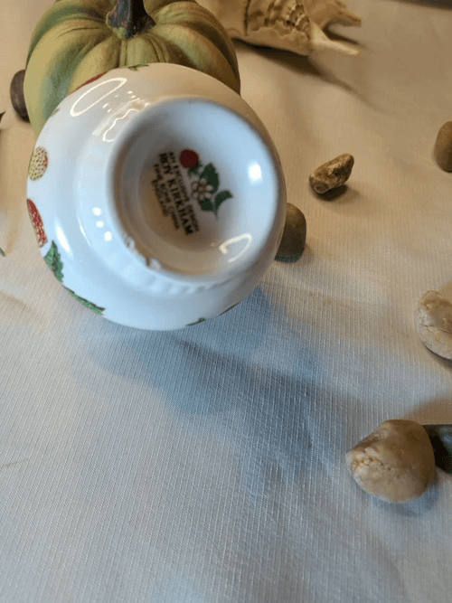 Elegant porcelain piece designed by ROY KIRKHAM England, featuring the classic strawberry pattern on Fine Bone China, giving it a charming vintage countryside look. Its softly shaped rim and curved body create an eye-catching presence, perfect for tea settings or as a refined decorative collectible. Ideal for display within vintage porcelain collections or light use, and sought-after as part of Roy Kirkham’s exclusive designs known for detailed artwork and lasting colors. Excellent overall condition with natural age traces that enhance its original c