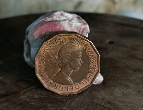 عملة بريطانية أصلية فئة Three Pence لعام 1965 بوزن مضبوط 6.80 غرام، غير جاذبة للمغناطيس، وفيها ازدواجية معدن واضحة بتدرّج اللون النحاسي/الاصفر على السطح، وهذا بيعطيها طابع فريد مطلوب من جامعين الأخطاء قبل التحويل لعملة الديسمل. تصميم مثمن يحمل صورة الملكة إليزابيث الثانية على الوجه الأول، وعلى الوجه الثاني بوابة Tudor Portcullis مع التاريخ 1965. القطعة محافظة على تفاصيل التاج والبوابة وحواف مثمنة واضحة، مع تباين لون المعدن بين السطح والحروف مما يظهر أثر ثنائية المعدن / ازدواجية المعدن بشكل ملفت ومناسب للعرض والتحف.