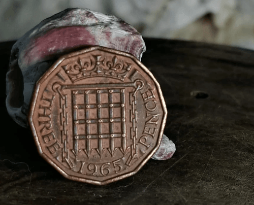 عملة بريطانية أصلية فئة Three Pence لعام 1965 بوزن مضبوط 6.80 غرام، غير جاذبة للمغناطيس، وفيها اة