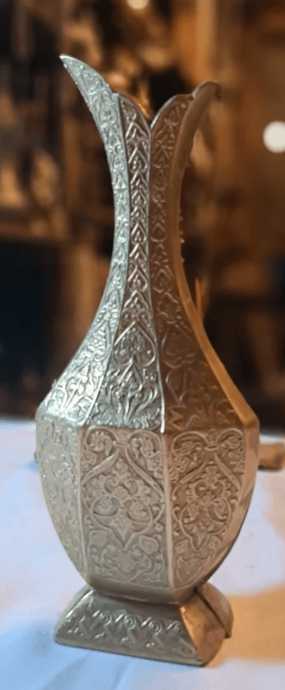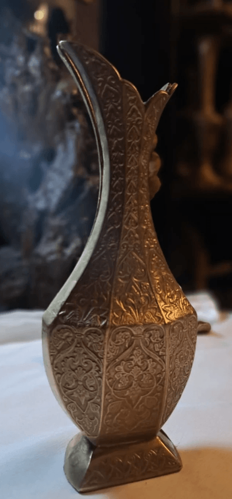 مزهرية نحاسية فاخرة بتصميم أنيق مستوحى من الطراز الشرقي الكلاسيكي، تتميز بنقوش محفورة يدويًا وتفاصيل دقيقة تضيف لها طابعًا راقيًا ولمسة فنية مميزة.